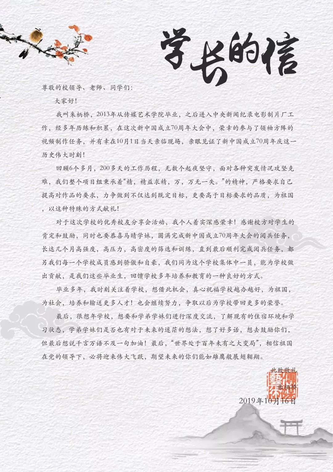 也感受到他對(duì)于祖國的熱愛,對(duì)于母校的熱愛。昨天你以傳媒為榮,今天傳媒以你為