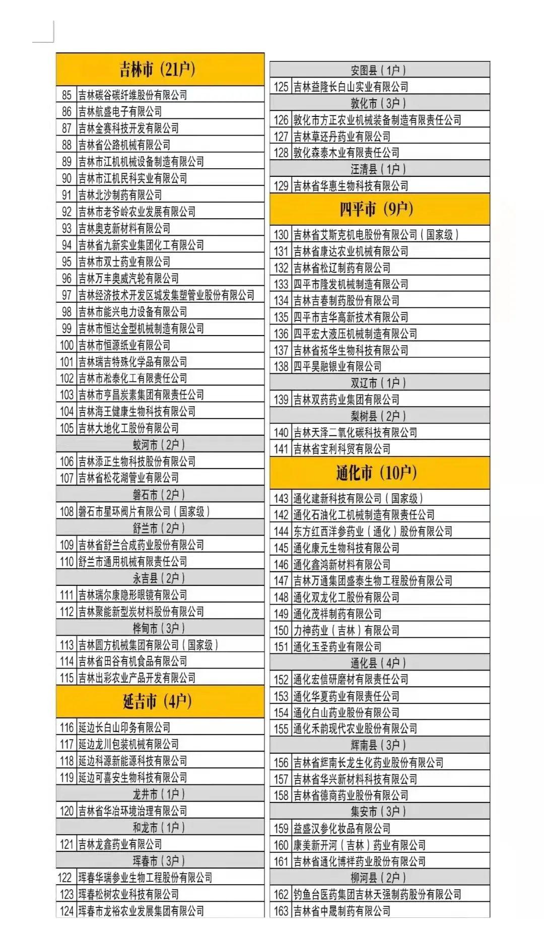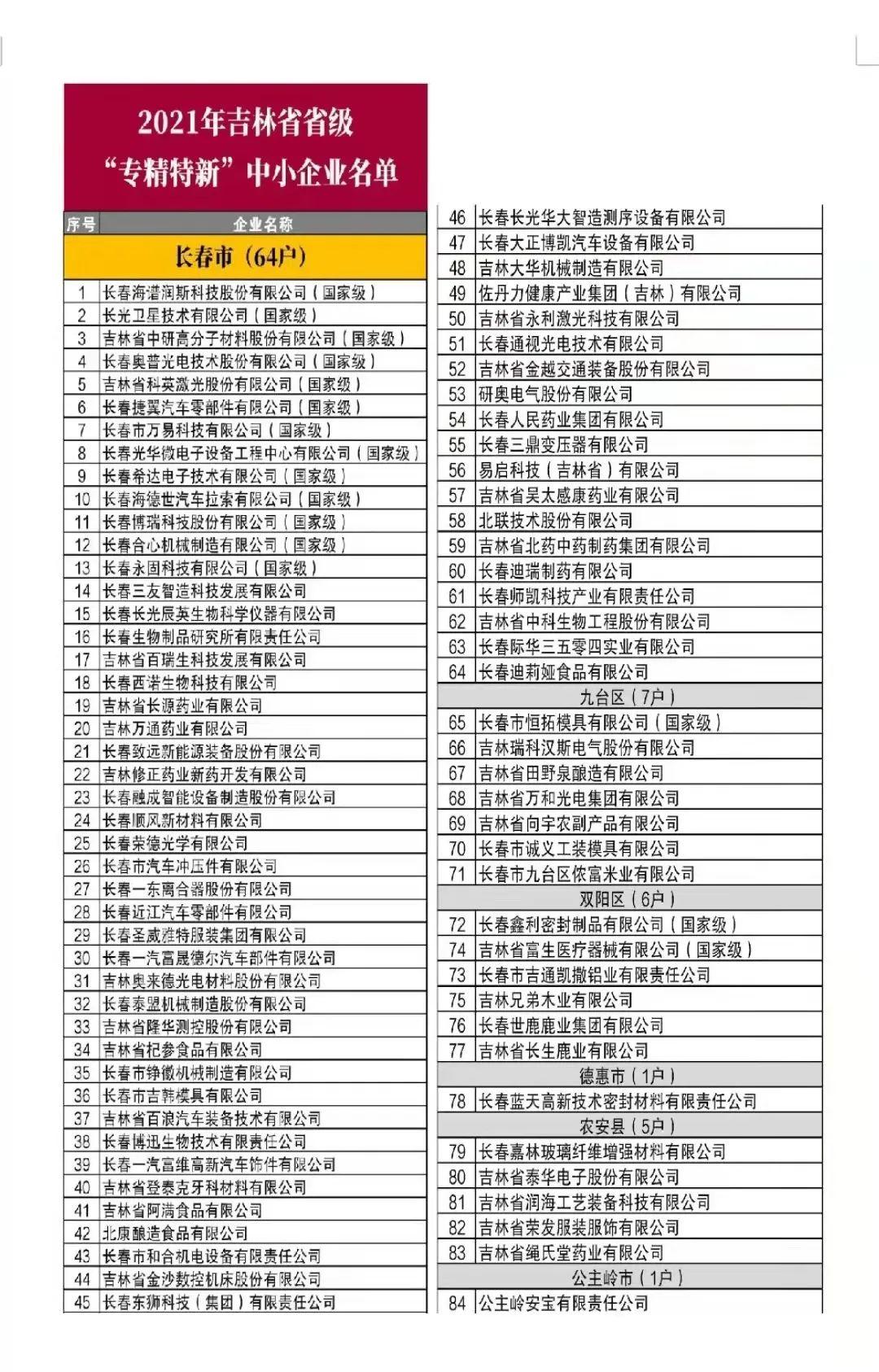 2021年吉林省省級(jí)“專精特新”中小企業(yè)名單公布,省內(nèi)10余城市、共197家企業(yè)榜上有名,涵蓋醫(yī)藥、生物、食品、機(jī)械制造、能源等多方面“專精特新”中小企業(yè)。