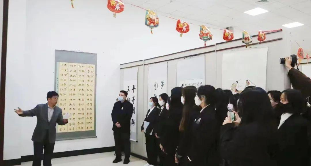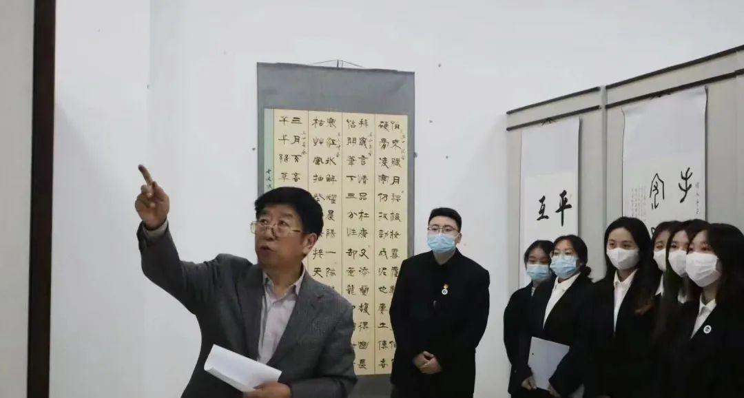 黨課結束后,初書記陪同學生們在美術館內自由觀賞優(yōu)秀的詩詞字畫作品,繪聲繪色講解著每一幅詩詞的深刻含義,引發(fā)在場師生的強烈共鳴與反響。