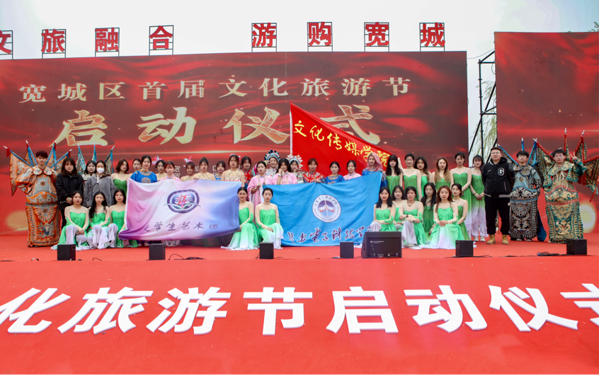 4 月 25 日,寬城區(qū)首屆文化旅游節(jié)啟動儀式在寬城區(qū)政府中心公園盛大舉行。在啟動儀式現(xiàn)場,來自長春電子科技學(xué)院 30 余名學(xué)生在校團(tuán)委的組織帶領(lǐng)下,文化傳媒學(xué)院分團(tuán)委的大力支持下,傾情獻(xiàn)上開場舞《花開寬城》、歌伴舞《夢在春天如愿》、京劇串燒 《梨園薈萃》,精彩的表演博得了現(xiàn)場嘉賓的一致好評,充分展示了長電學(xué)子朝氣蓬勃的精神風(fēng)貌。