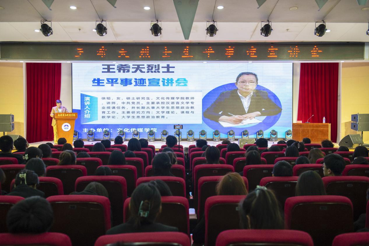 為深入學(xué)習(xí)貫徹黨的二十大精神,鼓舞激勵(lì)廣大師生弘揚(yáng)光榮革命傳統(tǒng)、賡續(xù)紅色血脈,紀(jì)念王希天烈士殉難100周年。4月12日,文化傳媒學(xué)院在圖書館報(bào)告廳舉辦了“王希天烈士生平事跡”宣講會。學(xué)校副校長、文化傳媒學(xué)院院長初長洲教授,創(chuàng)新創(chuàng)業(yè)部王瑩部長,文化傳媒學(xué)院全體輔導(dǎo)員老師以及300多名學(xué)生代表參加了此次宣講會。此次宣講會的主講人為文化傳媒學(xué)院徐韜老師。