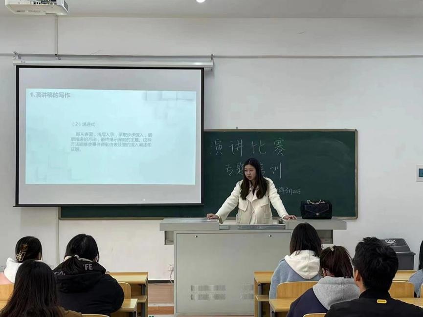 同學(xué)們參賽熱情高漲,但又緊張于激烈的競爭。對此,在演講比賽之前,文化傳媒學(xué)院的王宇辰老師認(rèn)真負責(zé)地為同學(xué)們準(zhǔn)備了一場賽前專題輔導(dǎo)講座。王宇辰老師從三個方面講述了演講的知識與技巧。同學(xué)們受益頗豐。此次培訓(xùn)講座使參賽選手對演講比賽有了進一步的認(rèn)識和理解,提升了他們的參賽自信和參賽能力,在校園內(nèi)營造了良好的學(xué)習(xí)氛圍。