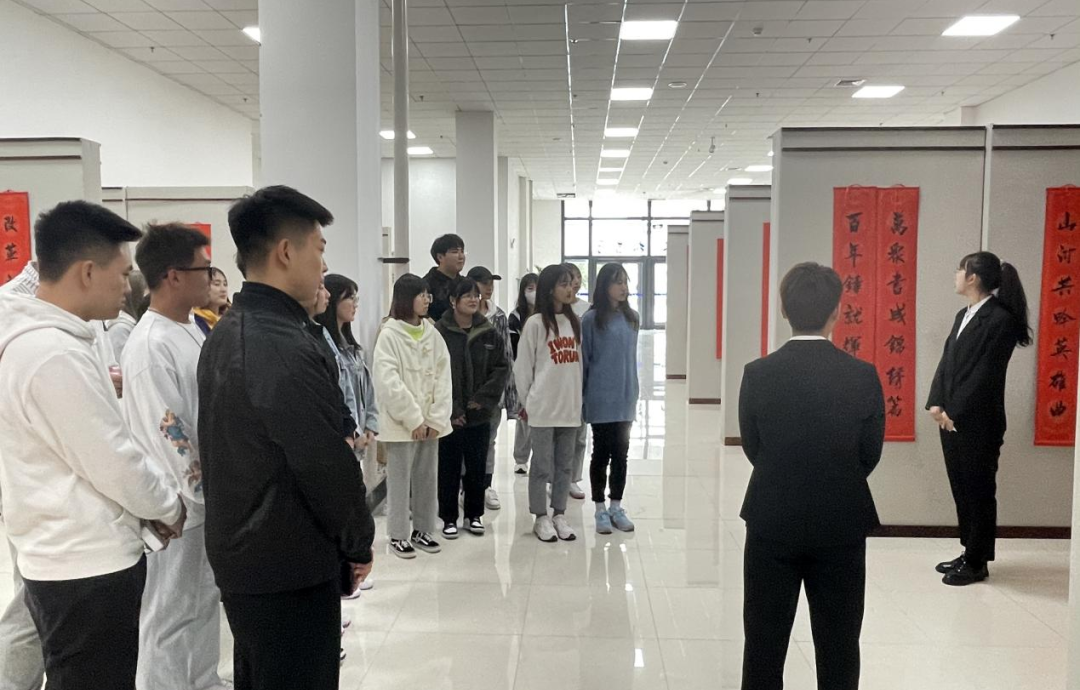 2021年10月6日文化傳媒學(xué)院大一學(xué)生在輔導(dǎo)員王曉明、劉一工老師的帶領(lǐng)下在圖書館一樓進(jìn)行“賞楹聯(lián)”活動。一副副散發(fā)著墨香的楹聯(lián)展現(xiàn)在大家面前,歌頌祖國壯麗河山,描繪“四史”崢嶸歲月,激勵著青年奮起拼搏。希望這些楹聯(lián)能給大一新生以動力、以鼓舞,讓他們堅定文化自信,傳承延續(xù)歷史文化之精髓。
