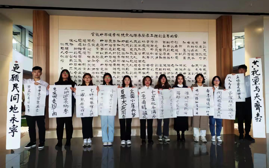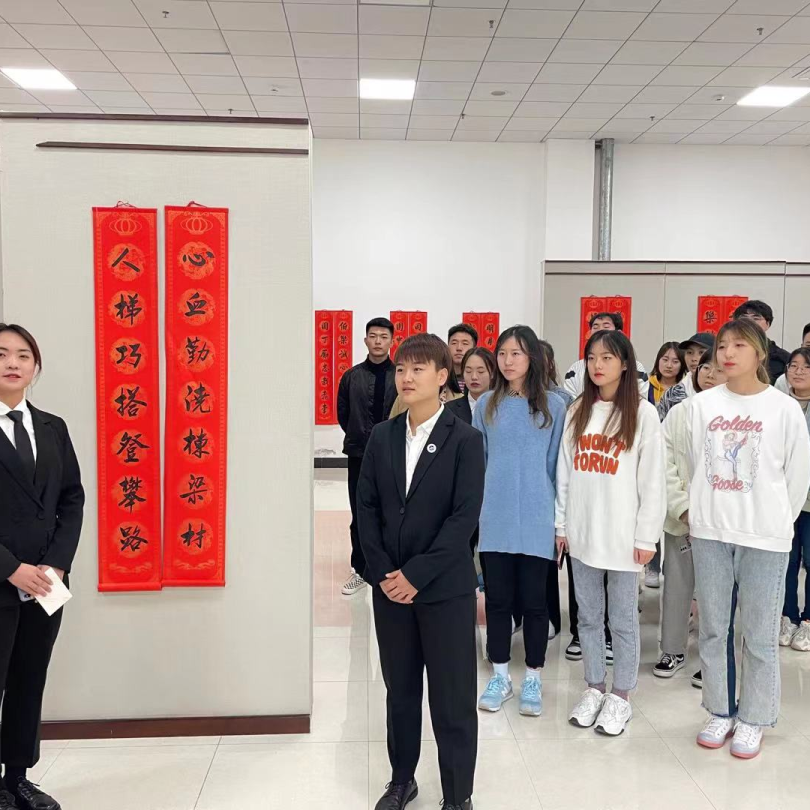 2021年10月6日文化傳媒學(xué)院大二學(xué)生在輔導(dǎo)員楊媛媛老師的帶領(lǐng)下以弘揚優(yōu)秀文化,傳遞社會正能量為宗旨,在圖書館大廳開展了賞楹聯(lián)頌楹聯(lián)的活動。此次活動給喜歡藝術(shù)的同學(xué)提供一個交流藝術(shù)的平臺,并進(jìn)一步宣傳校園文化 ,弘揚文化傳媒學(xué)院深厚的文化底蘊本次活動的成功舉辦、讓我們進(jìn)一步加強了對中國古老文化內(nèi)涵的了解,增強了同學(xué)們的文化自信,讓我們在學(xué)習(xí)四大文明古國文化精粹的征程中又邁進(jìn)了一步。