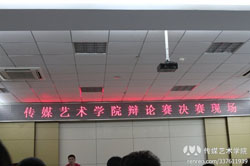 2012年5月24日,傳媒藝術(shù)分院新生辯論賽決賽在達新主教14樓大會議室正式拉開帷幕。出席本次賽事的嘉賓有傳媒藝術(shù)分院輔導員宋濤、大學生記者團團長韓春雨、傳媒分院學生會副書記郝亞玲。擔任本次比賽評委有:校辯論與演講協(xié)會會長常佳旭、主席魯希、第四屆光電杯辯論最佳辯手鄭念卿、傳媒學生會組織部部長張龍旭、體育部部長王浩、女生部部長方素霞、學習部部長周璐璐。傳媒分院新生以及外院辯論愛好者觀看本次比賽。