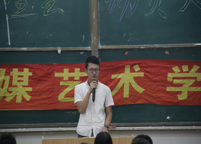 視頻完畢,學(xué)生會主席趙越超、團(tuán)委副書記王敏杰分別進(jìn)行了講話,介紹了學(xué)生會的作用以及舉辦