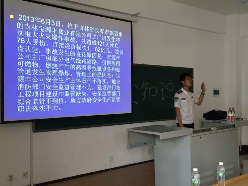 楊教官通過(guò)引用大量實(shí)際生活中的真實(shí)火災(zāi)案例講述了由于人們?nèi)狈ο腊踩R(shí)、缺乏基本的滅火技能而引發(fā)的火災(zāi)事故,并通過(guò)理論講解和正反典型案例剖析相結(jié)合的方式,為師生們上了一堂別開(kāi)生面的富有很強(qiáng)專業(yè)性、實(shí)用性、防范性的消防安全常識(shí)課.