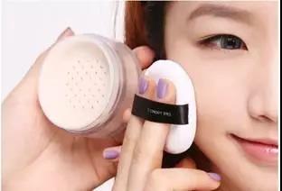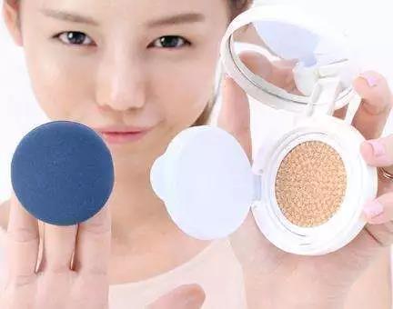 第二步:用氣墊,輕輕按壓氣墊取出適量粉底拍在臉上。