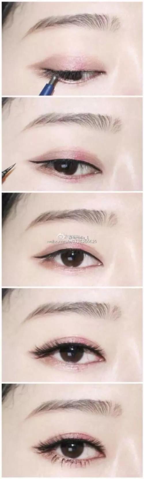 第五步:是眼妝。眼妝選擇一個(gè)適合季節(jié)的眼影顏色,上在雙眼皮的褶皺位置大面積去涂抹,接著用睫毛膏夾一下睫毛,涂上睫毛膏。之后在睫毛根部比較稀疏的位置分段地去填充一下內(nèi)眼線,這樣的眼妝很自然