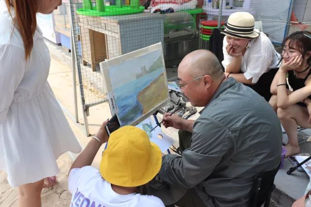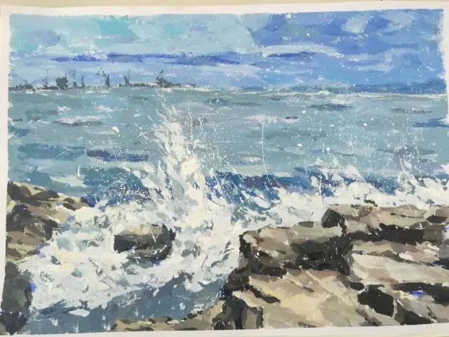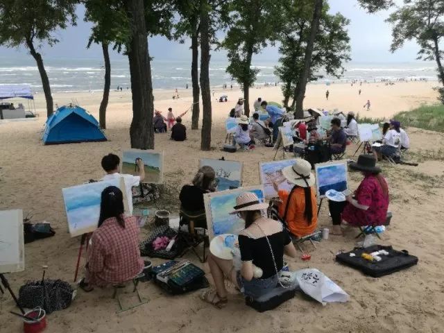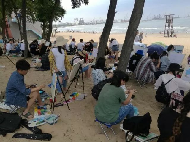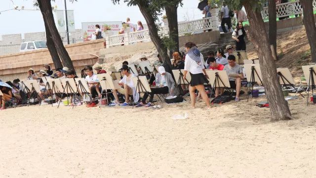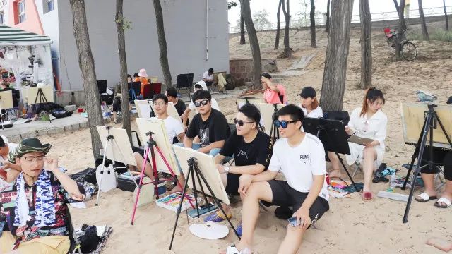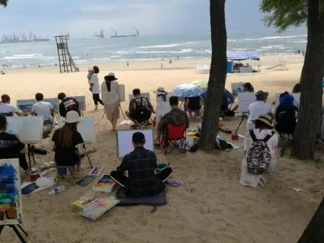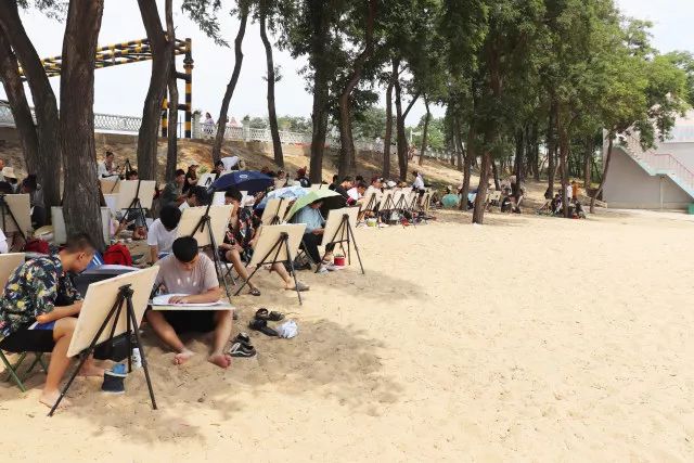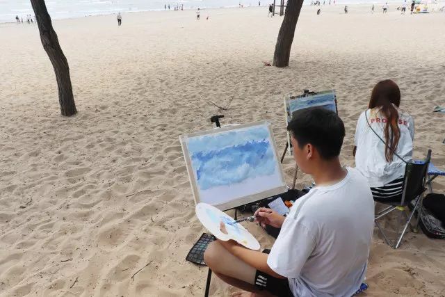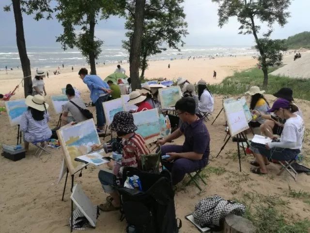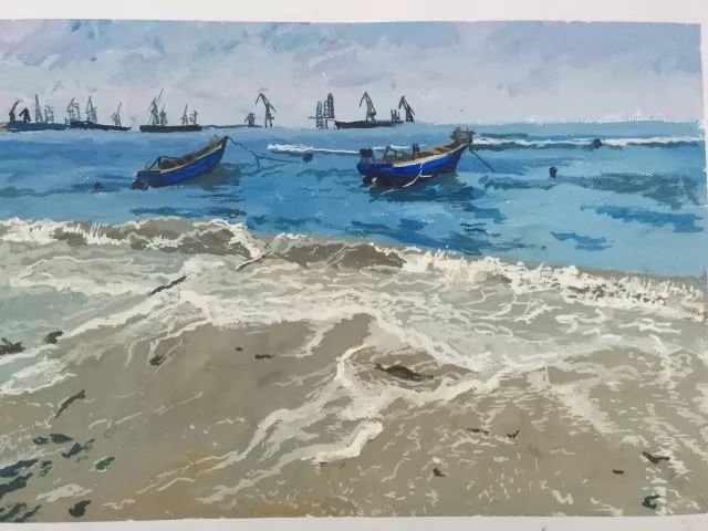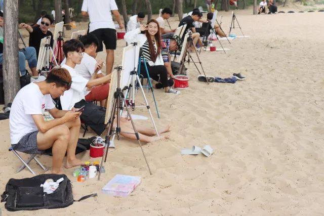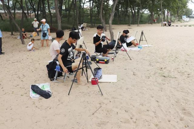 當(dāng)一切都已準(zhǔn)備好了,我們正式開始寫生了,望著遠(yuǎn)處的海,沙灘和長(zhǎng)城我相信很多同學(xué)心中都有很多的感慨,當(dāng)然畫出的畫也都是帶有情感的。