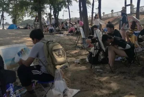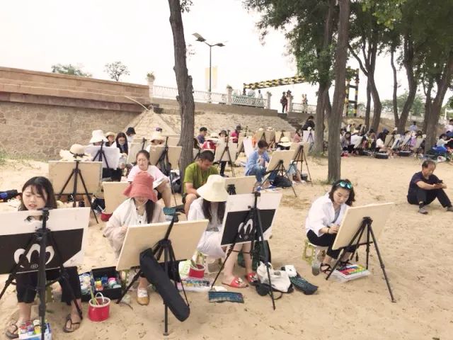 同學(xué)們?cè)诶蠋煹慕M織和帶領(lǐng)下快速的開始準(zhǔn)備寫生前的準(zhǔn)備工作。雖然天氣異常的炎熱,但是依然阻擋不了同學(xué)們畫畫的熱情。