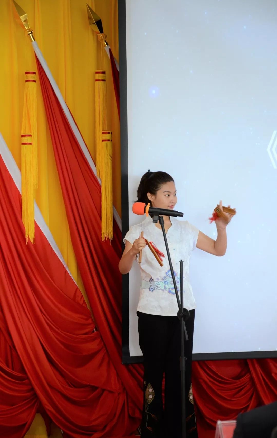 張琨同學(xué)的快板書《說說咱們的新時代傳習(xí)所》,生動活潑地匯報了新時代傳習(xí)所建立以來學(xué)院黨委開展的系列宣講傳習(xí)教育活動,張琨同學(xué)的匯報表演得到了王曉萍部長的表揚。