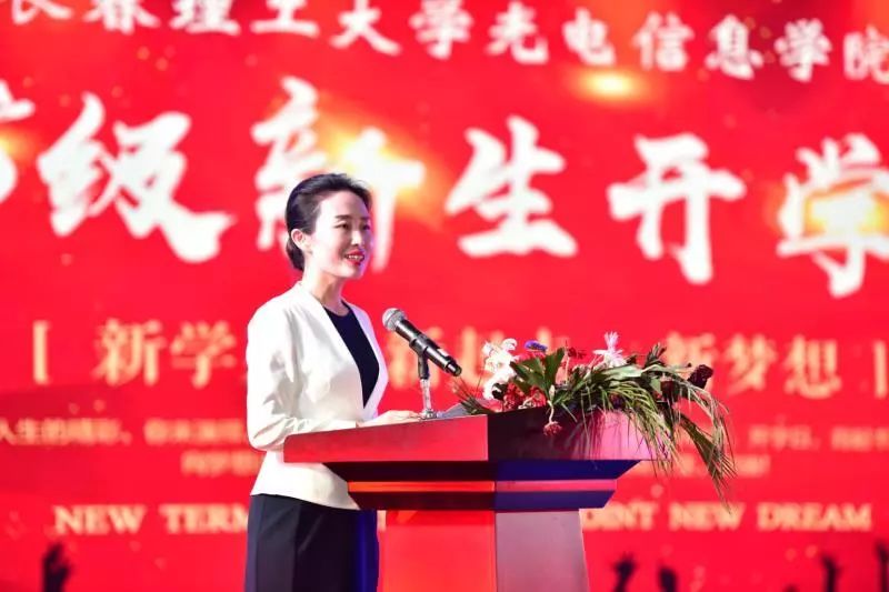 作為教師代表,馬社學(xué)院院長鞠秀晶老師的發(fā)言,代表了全體光電教師的心聲。她說:來到光電,就到了新的學(xué)習(xí)平臺,要重新審視和規(guī)劃人生。每個人的一生都是一次無法復(fù)制、無法重現(xiàn)的選擇之旅,希望同學(xué)們處理好求知、求真與求名、求利之間的關(guān)系,學(xué)會做人、做事,做好規(guī)劃,踏實走好每一步。鞠老師對同學(xué)們有兩點期望:一是要讀書與健身;二是一定不要網(wǎng)游與網(wǎng)貸。她希望同學(xué)們保持心靈的純凈,深切領(lǐng)會光電校訓(xùn)“厚德、誠信、自強、卓越”,成為有情懷、有擔(dān)當(dāng)、有追求、有本事的光電人。