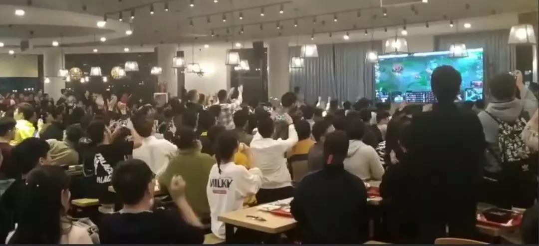 食堂也擠滿看直播的: