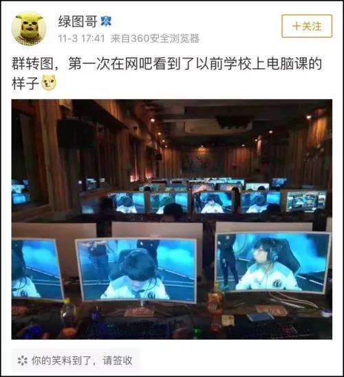 有網(wǎng)友自曝,在網(wǎng)吧里,電腦屏幕整齊劃一地跟上電腦課一樣: