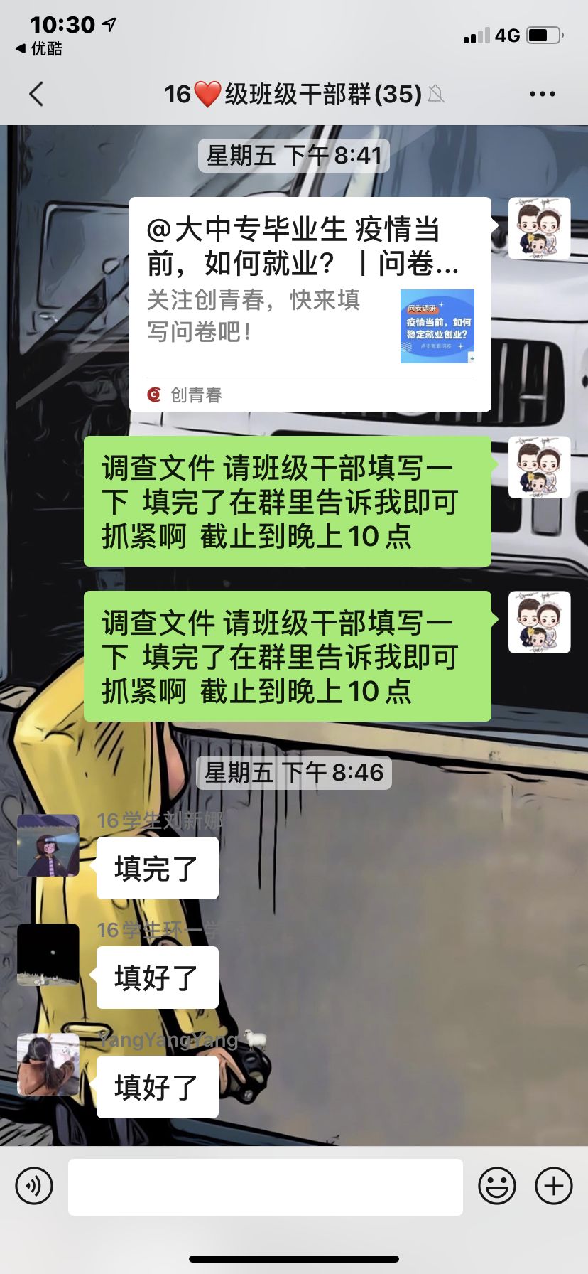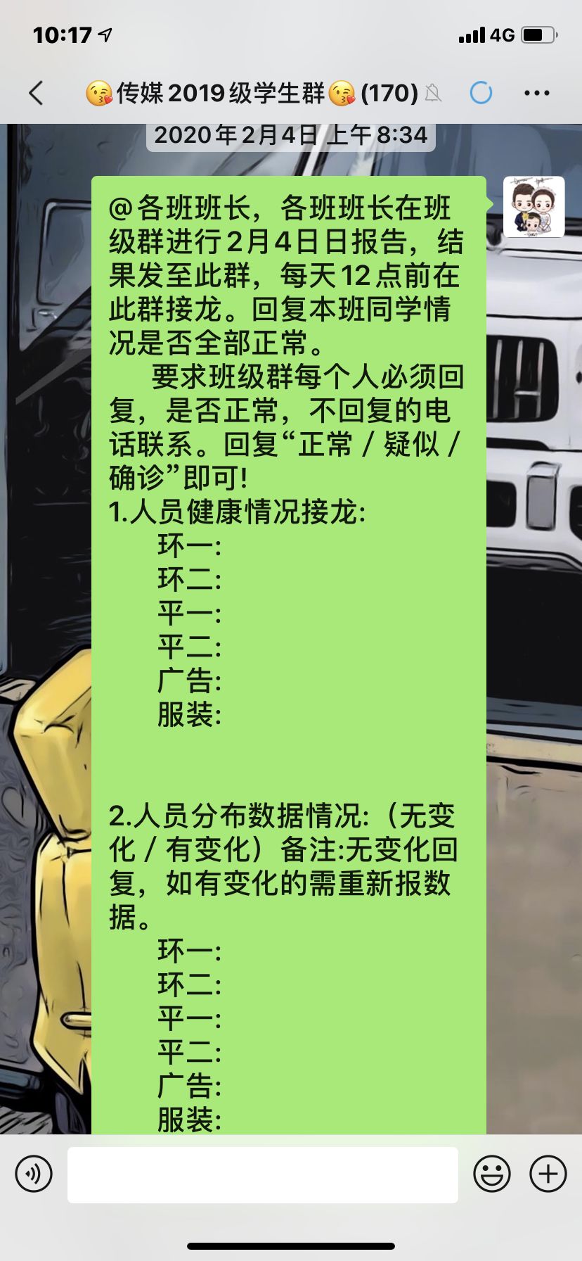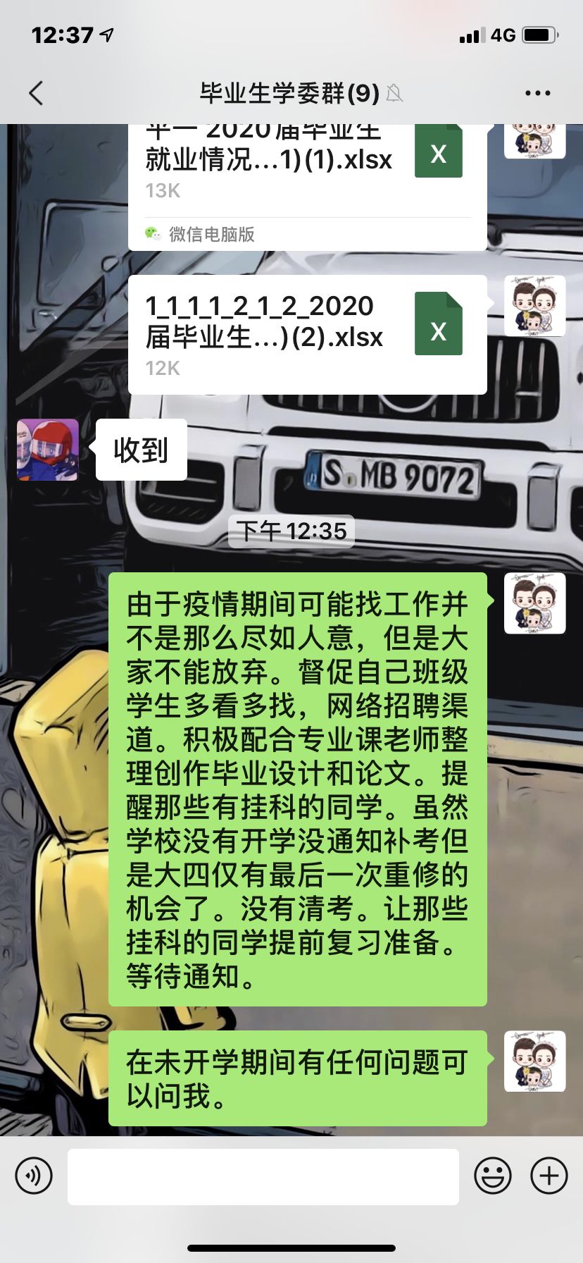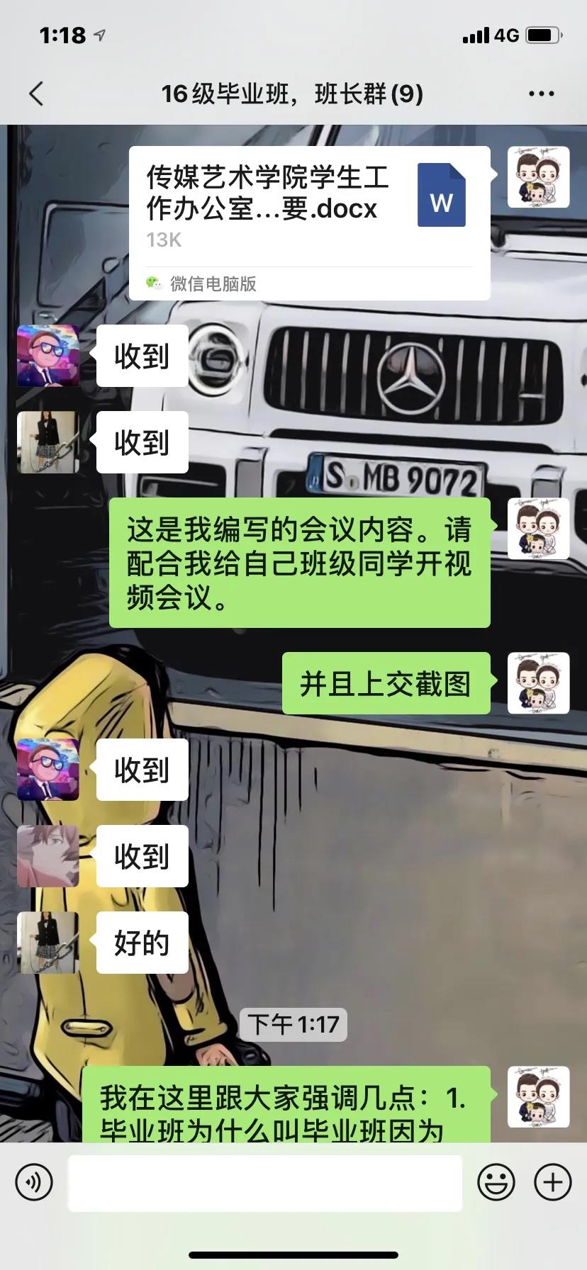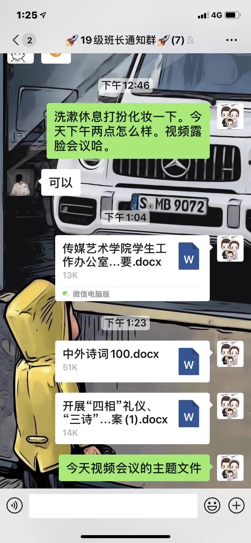 要求各班班長掌握本班學生行蹤的同時,要利用網(wǎng)絡(luò)組織本班同學召開主題班會,包括加強學生的思想政治教育、疫情知識教育、養(yǎng)成教育、安全教育等。發(fā)現(xiàn)任何問題一定及時和本年級輔導員聯(lián)系。