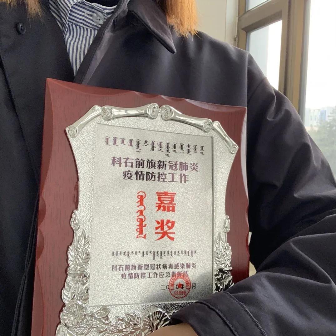 近日,科右前旗新型冠狀病毒感染肺炎疫情防控工作應(yīng)急指揮部召開(kāi)表彰會(huì),向無(wú)私無(wú)畏、奮不顧身投入疫情防控戰(zhàn)線的志愿者們致敬,王慧嬌榮獲“志愿者個(gè)人嘉獎(jiǎng)”榮譽(yù)。