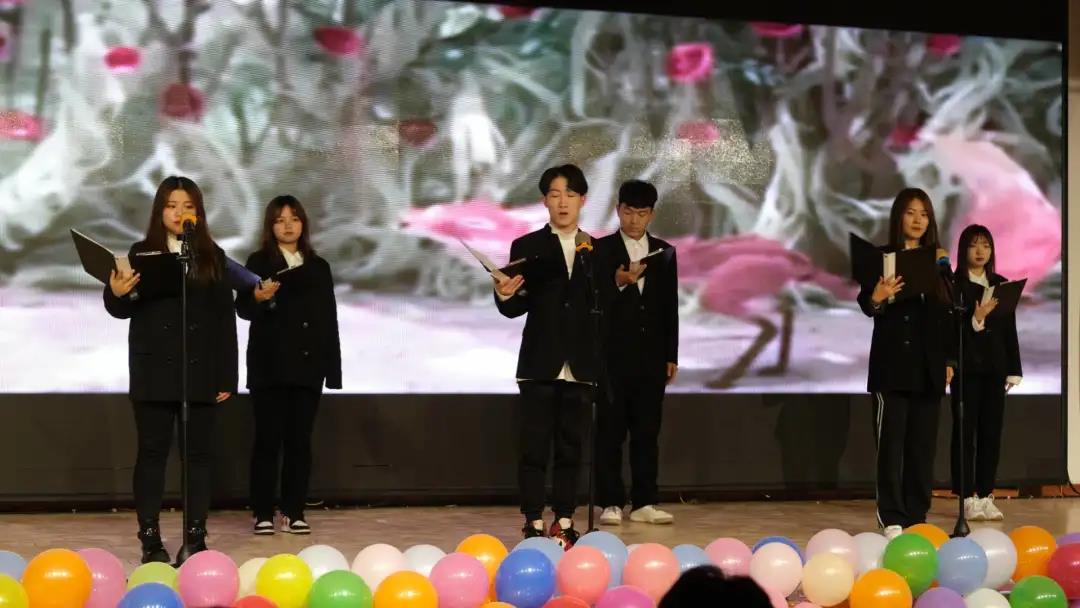 轉(zhuǎn)角淺處,忽聞舊音。八九同窗,輕語(yǔ)前行。齊聲喚、洗擁襟,你我不在舊時(shí)韻。歲月如鉛,滄海桑田。各為錦繡,海角天涯。未曾忘、廿年前,你我同窗一片情。學(xué)習(xí)部為我們帶來(lái)的朗誦《朗朗乾坤》為我們帶來(lái)了別樣的感受。