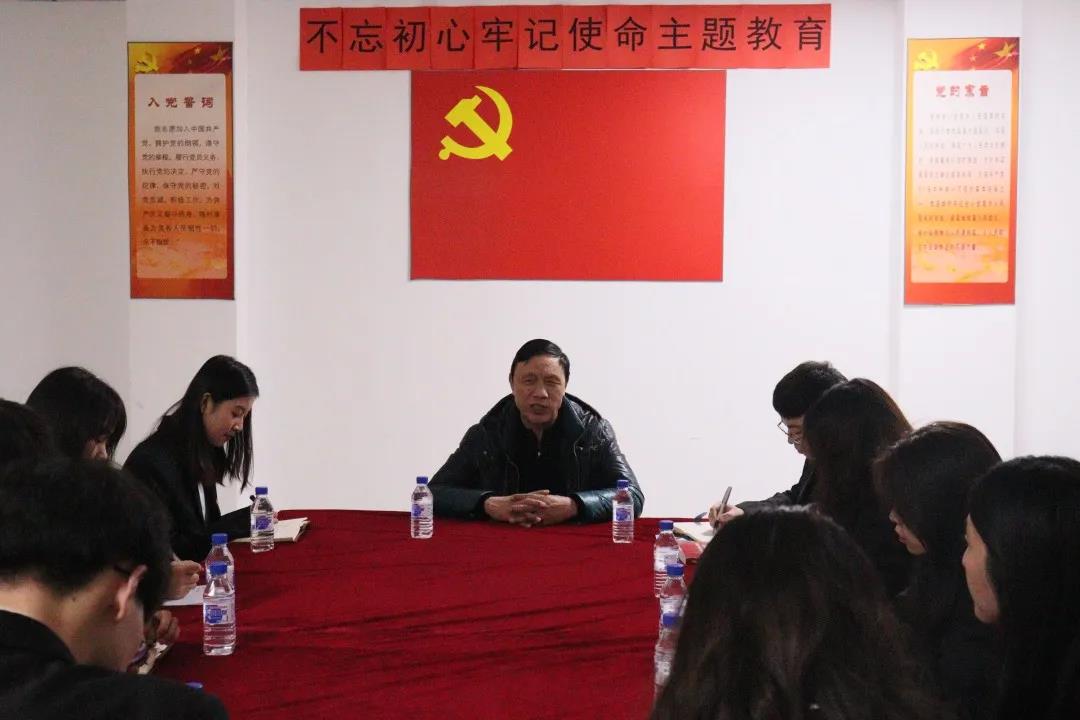學生支部書記劉一工老師解釋到:“不忘初心,牢記使命是對馬克思主義信仰的堅持和發(fā)展,是共產(chǎn)黨人的靈魂。習近平總書記在十九大報告中指出,在全黨開展“不忘初心,牢記使命”主題教育,推動全黨更加自覺地為實現(xiàn)新時代黨的歷史使命不懈奮斗。我們開展主題教育,就是要用習近平新時代中國特色社會主義思想武裝全黨,不斷增強“四個意識”、堅定“四個自信”、做到“兩個維護”,堅定不移走中國特色社會主義道路,為實現(xiàn)中華民族偉大復(fù)興的中國夢而努力奮斗。青年興則國興,青年強則國強。作為新時代青年的你們,要牢記歷史,牢記時代賦予你們的使命。讓中華民族的偉大復(fù)興的中國夢在你們這一代代青年的接力奮斗中變?yōu)槊篮玫默F(xiàn)實。”