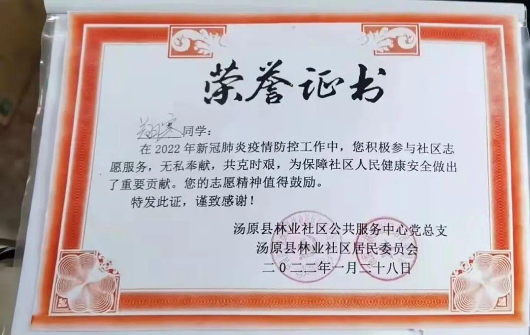 這次寒假志愿活動,讓我每天都過得很充實,我從中學(xué)到了很多雖然信息量大而繁冗,但是鍛煉了我自身能力,使得自己工作能力增強,處理事情游刃有余,開闊了眼界。而且為了家鄉(xiāng)百姓的幸福生活及疫情期間的安全,我責(zé)無旁貸。很感謝有這次機會讓我能鍛煉自己、磨練心性。