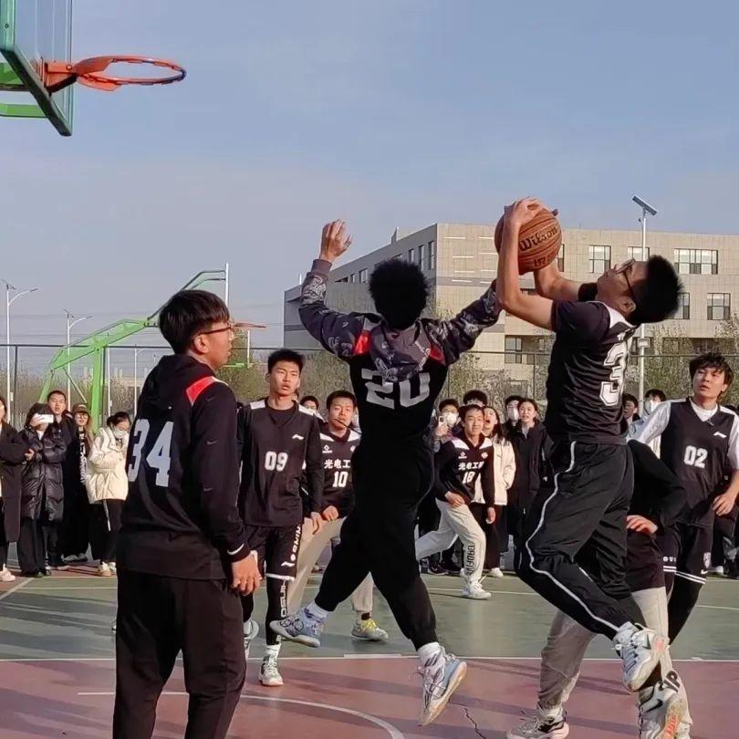 半決賽階段,雙方隊(duì)員矯健的步伐、精湛的技術(shù)以及不斷變化的戰(zhàn)術(shù),將比賽一步步推向了高潮。賽場(chǎng)邊上同學(xué)們的加油聲、吶喊聲不斷激勵(lì)著球員們,使他們的運(yùn)球投籃動(dòng)作更加一氣呵成。