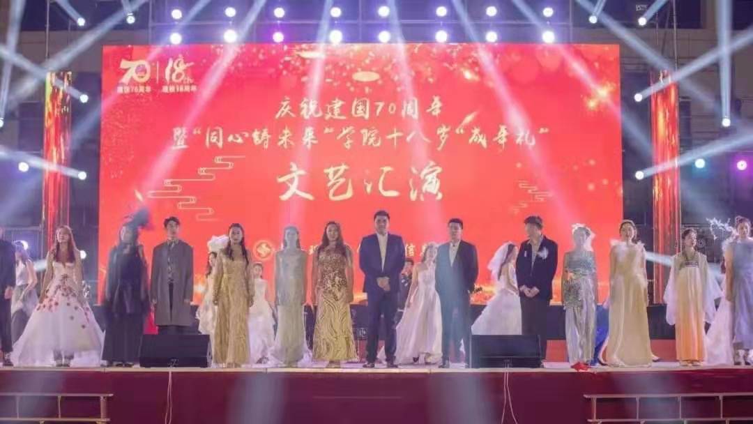 盛世華章張燈結(jié)彩,歌舞飛揚(yáng),在學(xué)校領(lǐng)導(dǎo)致辭完畢后,學(xué)院十八歲“成人禮”文藝匯演在傳媒藝術(shù)學(xué)院和商學(xué)院的《盛世華章》中打開(kāi)了
