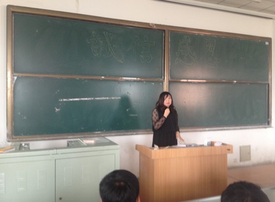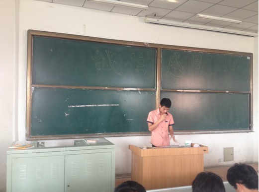 2013年6月6日15:10在8教201階梯教室,12221、12222、12223、12224四個(gè)班共同開展了以“誠(chéng)信感恩”為主題的班會(huì)。