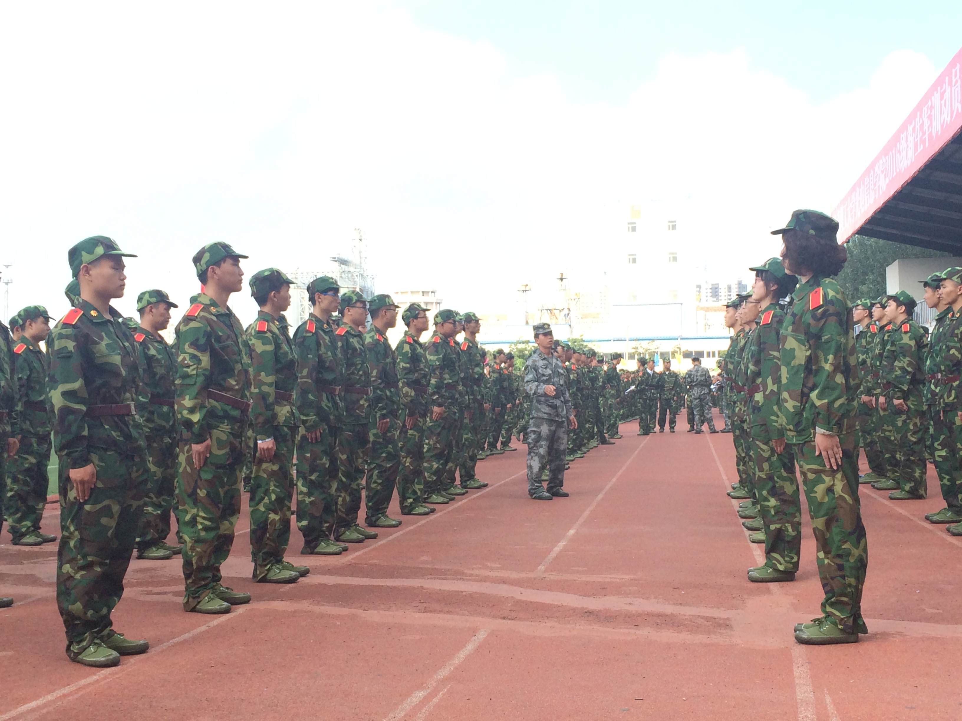 9月17日,光電工程分院2016級(jí)新生軍訓(xùn)正進(jìn)行的如火如荼。本次軍訓(xùn)訓(xùn)練場(chǎng)地在達(dá)新校區(qū)體育場(chǎng)上舉行的。盡管赤日當(dāng)空,但光電工程分院的學(xué)子們熱情不減,精神抖擻地參與到了各個(gè)項(xiàng)目訓(xùn)練當(dāng)中。在軍訓(xùn)中,高溫酷暑給軍訓(xùn)工作帶來(lái)困難,有的學(xué)生病倒了,憑借著頑強(qiáng)的意志,稍有好轉(zhuǎn)便堅(jiān)持訓(xùn)練;有的學(xué)生帶病仍在堅(jiān)持訓(xùn)練。在部隊(duì)教官親切的關(guān)懷和嚴(yán)格訓(xùn)練下,在短短的一天里,齊步走、正步走、齊步變正步、解散、集合及分列式等預(yù)定訓(xùn)練科目已初見(jiàn)成效。教官手把手教,學(xué)生認(rèn)真的學(xué),在軍訓(xùn)隊(duì)列比賽中,方隊(duì)整齊,精神飽滿,步伐矯健、口令準(zhǔn)確、聲音嘹亮。