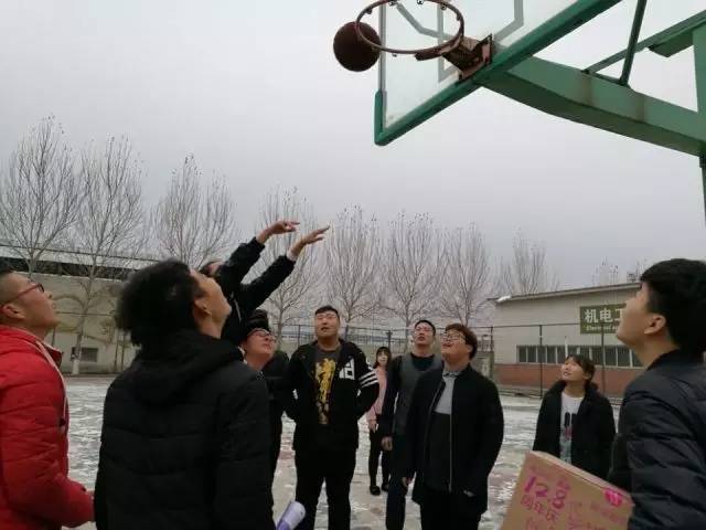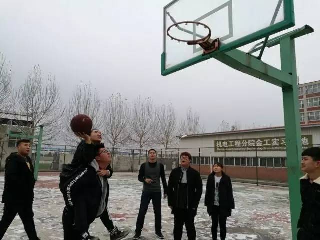 比賽時(shí),隊(duì)員們背著女隊(duì)員在寒風(fēng)中奔跑,沖向籃下,投出籃球。隨著比賽的進(jìn)行,各個(gè)隊(duì)伍都在努力,永爭(zhēng)第一。