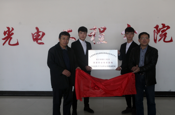 首先,秦院長(zhǎng)和王主任進(jìn)行揭牌儀式,光電工程分院院長(zhǎng)張海成為本次活動(dòng)致詞,在講話中,張?jiān)洪L(zhǎng)充分表現(xiàn)出了對(duì)基地的大力支持,并對(duì)分院同學(xué)進(jìn)行了激勵(lì),使同學(xué)們更堅(jiān)定了拿到真空鍍膜的工程師證書的決心。