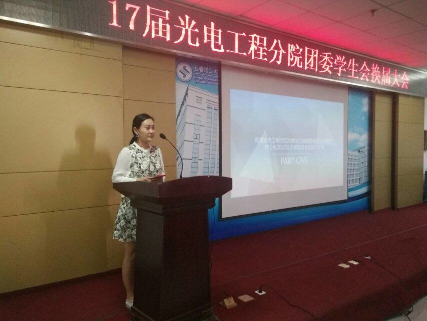 2017年6月30日中午12點(diǎn),17屆光電工程分院團(tuán)委學(xué)生會(huì)換屆大會(huì)在主教學(xué)樓14樓大會(huì)議室正式召開(kāi),光電工程分院院長(zhǎng)付秀華教授,光電工程分院團(tuán)委書(shū)記趙璐路老師,光電工程分院辦公室主任李丹老師出席了本次大會(huì)。