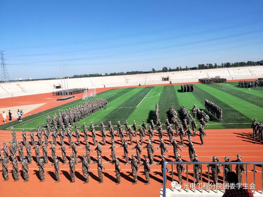 在熾熱的操場(chǎng)上借著短暫的休息,開(kāi)展了隊(duì)列操圖案計(jì)劃的討論——從圖形的類(lèi)型到圖形的簡(jiǎn)化,從方陣的排列到方正的展開(kāi),和一些新生更喜歡圖書(shū)館的空調(diào),在訓(xùn)練后迅速淋浴,宿舍、訓(xùn)練場(chǎng)、食堂、圖書(shū)館,鋪陳的是光電初遇時(shí)絢麗的首章,銘刻的是我們這代光電人共有的記憶。