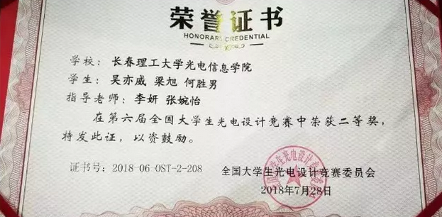2017年12月份的“東北賽區(qū)光電賽”到2018年7月份的“全國光電大賽決賽”我們最大的感受就是增長了知識(shí),豐富了閱歷,學(xué)到了全新的東西,并且在實(shí)際操作過程中擴(kuò)展了思維,增強(qiáng)了動(dòng)手能力,使自己掌握了更多的技能。