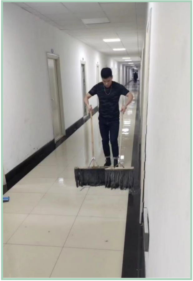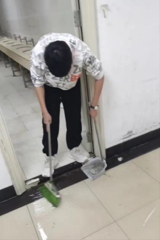 3月11日晚18點30分,16棟4樓商用中央水處理系統(tǒng)因故障產(chǎn)生大面積漏水,2021336楊林澎首先發(fā)現(xiàn)漏水進行掃水清理,隨著積水面積的不斷增加,四樓大三光電工程學院學生自發(fā)積極處理漏水情況。首先由光電工程學院大三輔導員李琢老師聯(lián)系對應(yīng)維修人員,2021404丁彥文聯(lián)系舍務(wù)部門說明漏水情況,再由20211班班長2021102丁增、20214班班長2021443劉洪澤組織四樓同學對水房的漏水情況進行清水處理。第一批由2021145李靖宇、2021532吳昊、2021502陳圣雨、2021445李金泉,四名同學在樓道中掃水;第二批由2021443劉洪澤、2021408韓鈺潔兩名同學在事故發(fā)生位置進行排水處理;第三批由2021102丁增、2021229于宏鑫兩名同學在水房處對走廊積水進行排水處理。搶險過程各位同學積極主動團結(jié)一致。在輔導員李琢老師的帶領(lǐng)下成功清理將四樓全部積水,待維修人員檢查完畢后,四樓漏水事件告一段落。