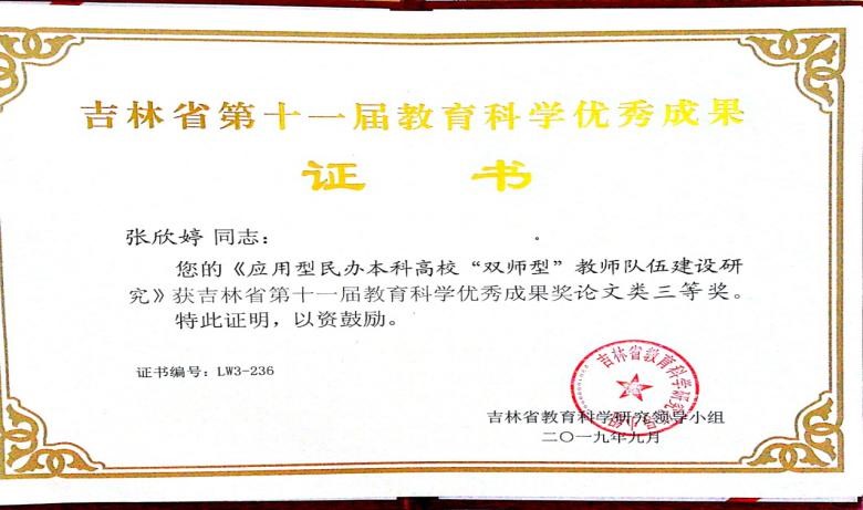 | 3 | 民辦高校“雙師型”教師隊伍建設研究與實踐 | 吉林省教育科學規(guī)劃 | 張欣婷 |