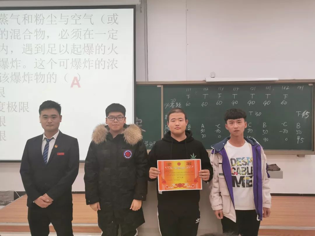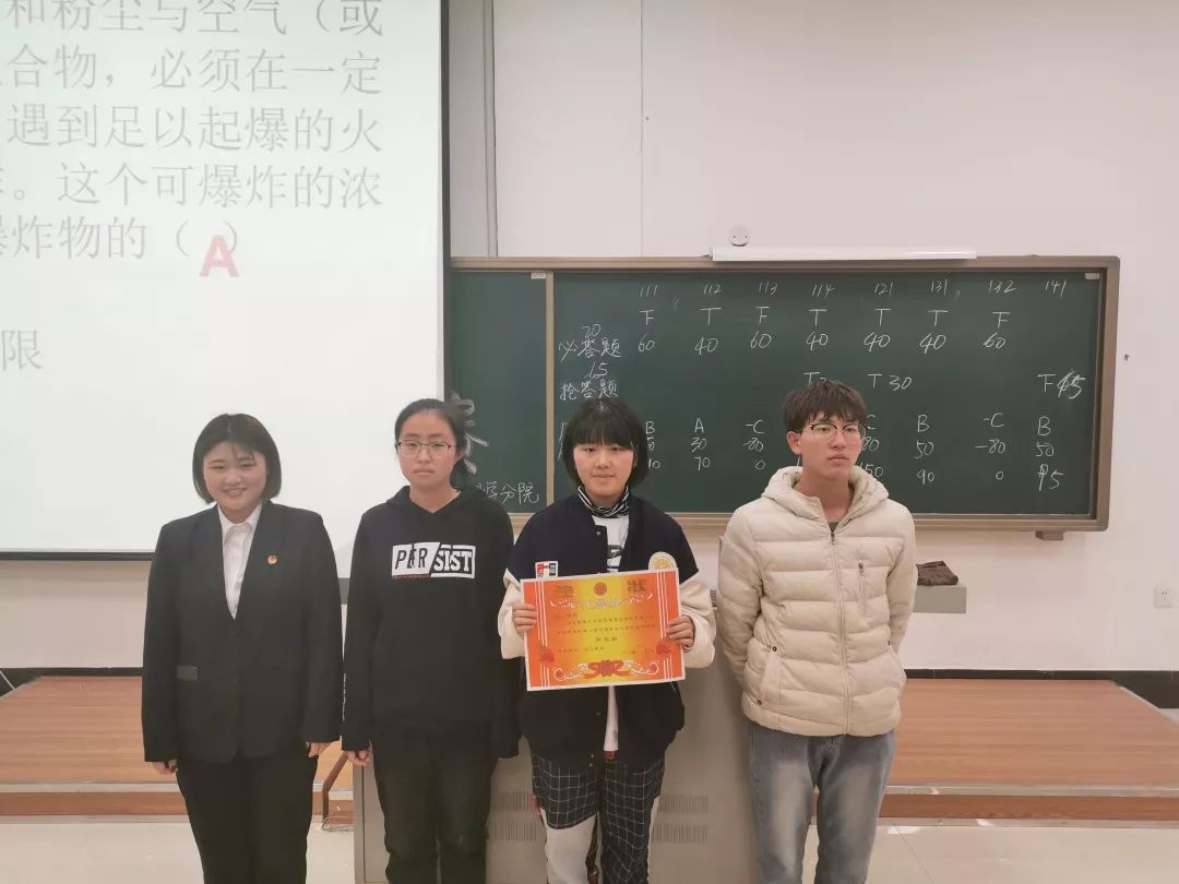 經(jīng)過三輪激烈比拼,評選出了優(yōu)秀獎,積極獎,文明獎,一二三等獎。最終,19121取得了本次比賽的勝利,榮獲一等獎。19114班榮獲二等獎。19111班榮獲三等獎。19132班榮獲積極獎。19113班榮獲文明獎。19112班榮獲風(fēng)采獎。19131和19141獲得優(yōu)秀獎。光電科學(xué)分院學(xué)生會各部門部長為他們頒發(fā)獎狀以及豐厚的獎品。第一屆校園安全知識競賽圓滿成功。