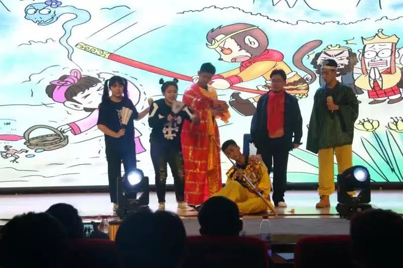 學(xué)長學(xué)姐們說學(xué)逗唱精妙絕倫,吹捧嘲諷寓教育人,幽默的語言,夸張的表情,將小品表演的得淋漓盡致,引得觀眾一陣陣爆笑。