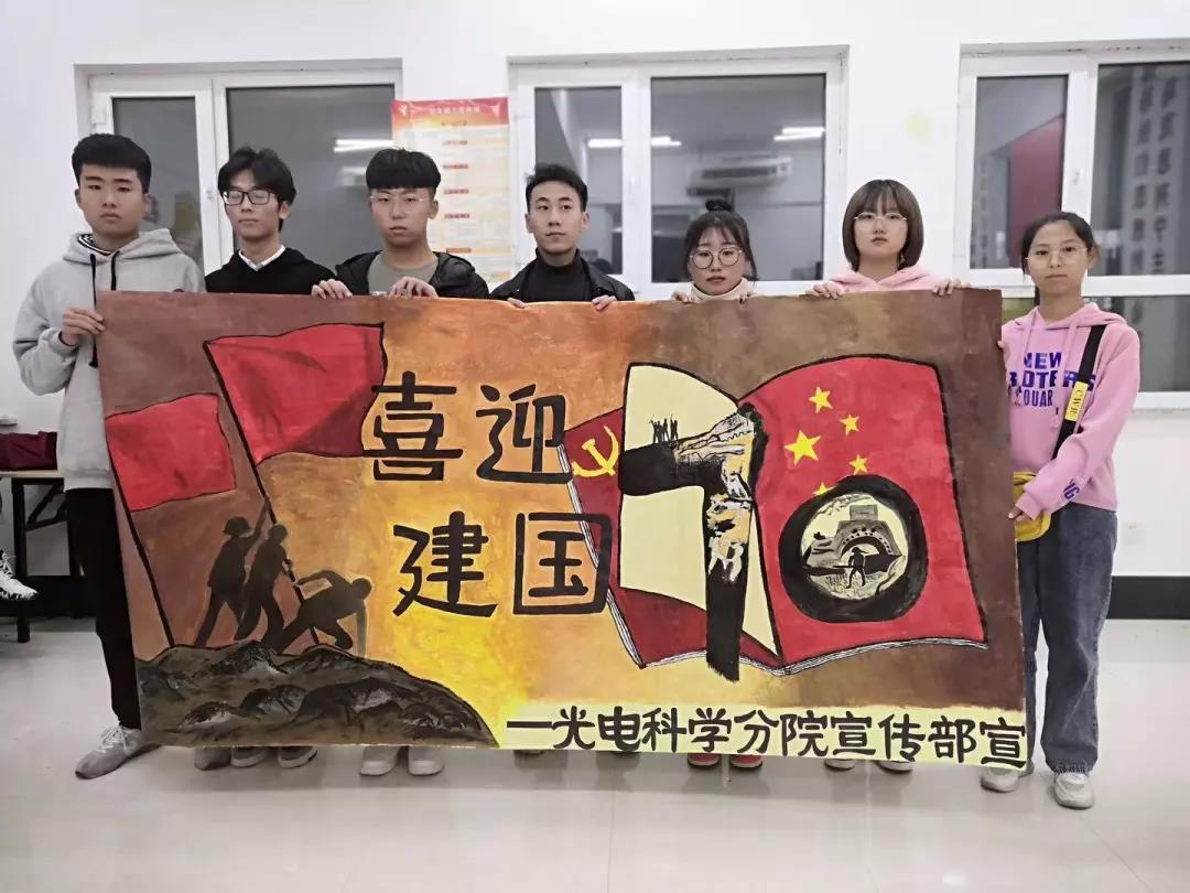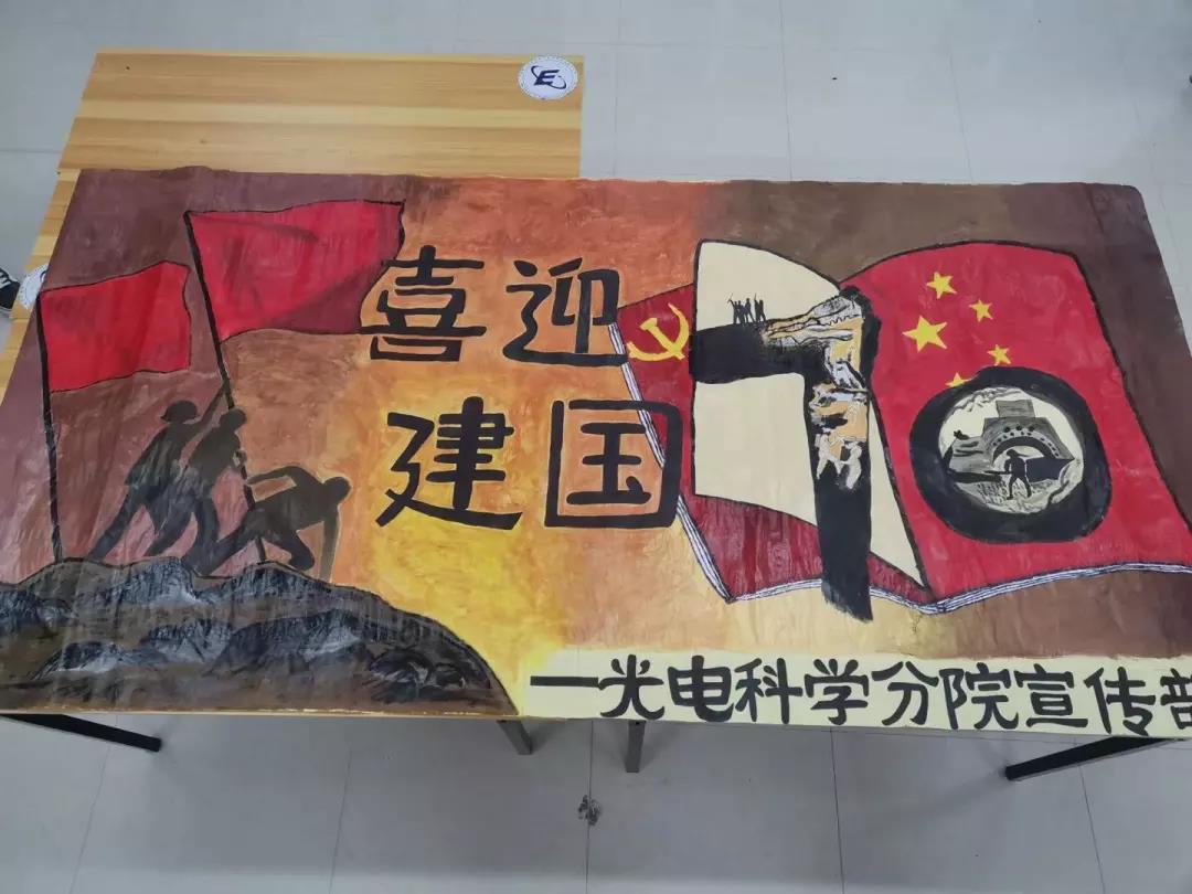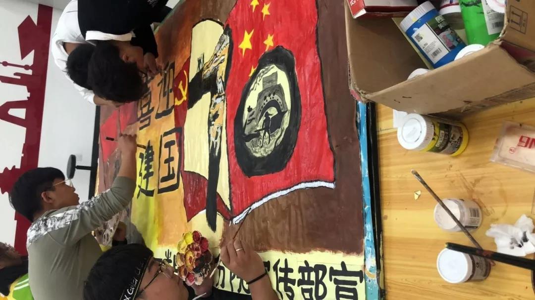 在新中國成立70周年之際,每個(gè)人心中都懷揣著憧憬未來的喜悅,國慶閱兵的震撼依舊在我們的心中,有著難以表的激動喜悅。 10月21日,我院學(xué)生會宣傳部全體成員圍繞新中國成立70周年這一主題繪制一幅2.4米x1.2米的海報(bào),經(jīng)歷了近一周的時(shí)間,在宣傳部全體成員的耐心繪制下,海報(bào)制作完成。