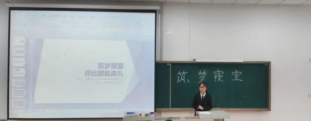 頒獎(jiǎng)典禮上,主持人介紹本次筑夢(mèng)活動(dòng)的意義,比賽內(nèi)容和評(píng)比規(guī)則以及一個(gè)優(yōu)良的寢室氛圍對(duì)當(dāng)代大學(xué)生校園生活所具有的重要性。
