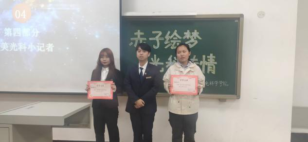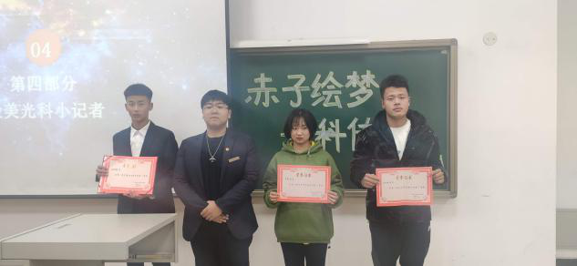 展記者風(fēng)采,秀校園文化。為加強(qiáng)我院學(xué)生對(duì)媒體工作的熱情,豐富學(xué)生校園生活,營(yíng)造濃郁的校園藝術(shù)氛圍。光電科學(xué)學(xué)院團(tuán)委學(xué)生會(huì)新媒體中心于2020年11月8日中國(guó)記者節(jié)在主教樓東階102舉辦了以“赤子繪夢(mèng),光科傳情”為主題的活動(dòng)。