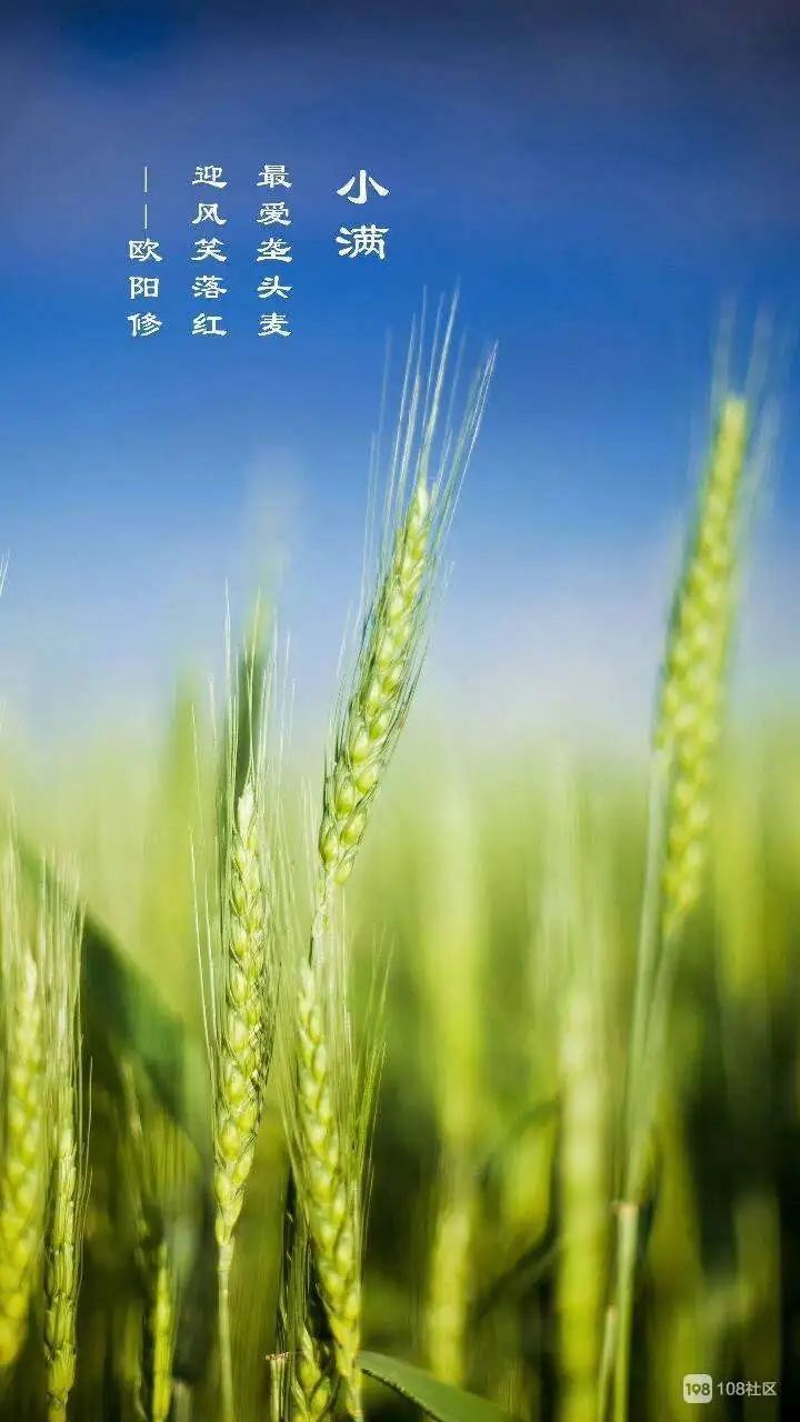 小滿是二十四節(jié)氣的第八個(gè)節(jié)氣?!对铝钇呤蚣狻罚?quot;四月中,小滿者,物致于此小得盈滿。" 小滿時(shí)節(jié),北方地區(qū)麥類等夏熟作物籽粒已開始飽滿,但還未成熟,所以叫小滿。南方地區(qū)的農(nóng)諺賦予小滿的寓意為:"小滿不滿,干斷田坎";"小滿不滿,芒種不管"。這里的"滿"字,是指雨水多的意思,即小滿時(shí)田里如果蓄不滿水,就可能造成田坎干裂,甚至芒種時(shí)也無法栽插水稻。