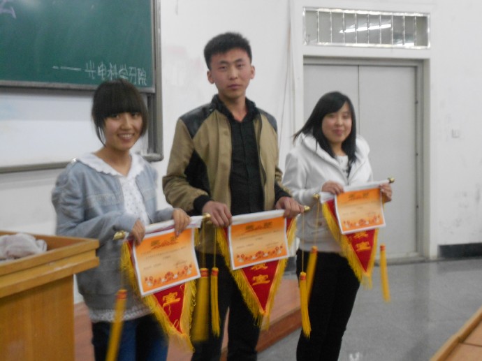 光電分院各寢室的的同學(xué)們?cè)谶@段期間,在衛(wèi)生.安全.文明.整潔.裝飾屋子等其他方面做的十分出色。其中最好的給予了獎(jiǎng)狀及錦旗。B-112,B-420,D-201,被評(píng)為“文明寢室”,由學(xué)生會(huì)團(tuán)委副書記給同學(xué)們頒發(fā)了獎(jiǎng)狀及文明寢室錦旗。而D-211,D-204,D-203,D-202,D-108,D-112,B-107被評(píng)為”優(yōu)秀寢室“,由學(xué)生會(huì)各部部長辦法了優(yōu)秀寢室獎(jiǎng)狀,以資鼓勵(lì)。同學(xué)們第一次榮獲此類獎(jiǎng)項(xiàng)心里難免有點(diǎn)甜滋滋的心情,不由的臉上掛上了陽光般燦爛的笑容。