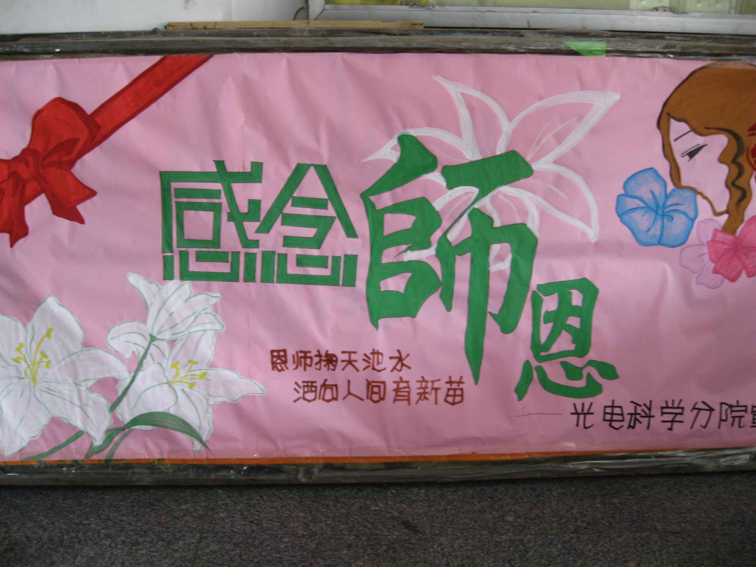 大家都說您培育著祖國的棟梁,我卻要說您就是那棟梁。是您!支撐起我們一代人的脊梁,已經是第無數(shù)次把您的身影化成紅燭,為后輩獻出了所有的光和熱,您的品格和精神濃縮成兩個字——燃燒,不停地燃燒,燃燒…… 還是您,工作在今朝,描繪的卻是祖國未來的藍圖;教學在課堂,成就的卻是五湖四海的莘莘學子!
