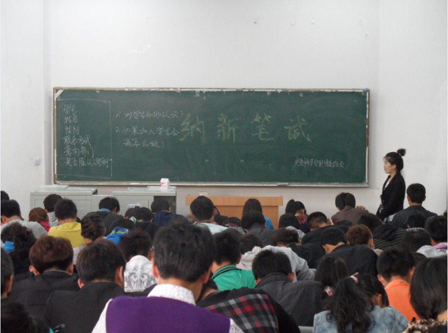 9月17日下午三點(diǎn)半,光電科學(xué)分院學(xué)生會(huì)新成員納新筆試在8教102順利進(jìn)行,200余名12級(jí)新生參與了此次院學(xué)生會(huì)納新活動(dòng)。在一個(gè)小時(shí)的時(shí)間里呈交上了自己的答卷。院學(xué)生會(huì)老師親臨現(xiàn)場(chǎng)觀察各位同學(xué)的考試狀態(tài),對(duì)院學(xué)生會(huì)此次的納新工作給予了指導(dǎo)。