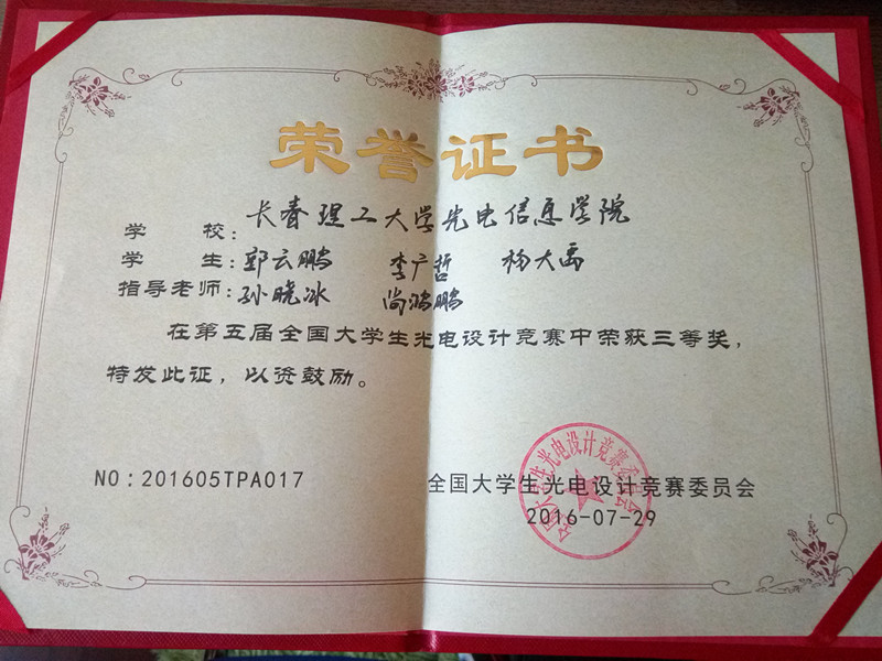 了三等獎(jiǎng)。此次大賽是我分院第一次參加的光電設(shè)計(jì)類的大賽,并且得到了評(píng)委的一致好評(píng)。