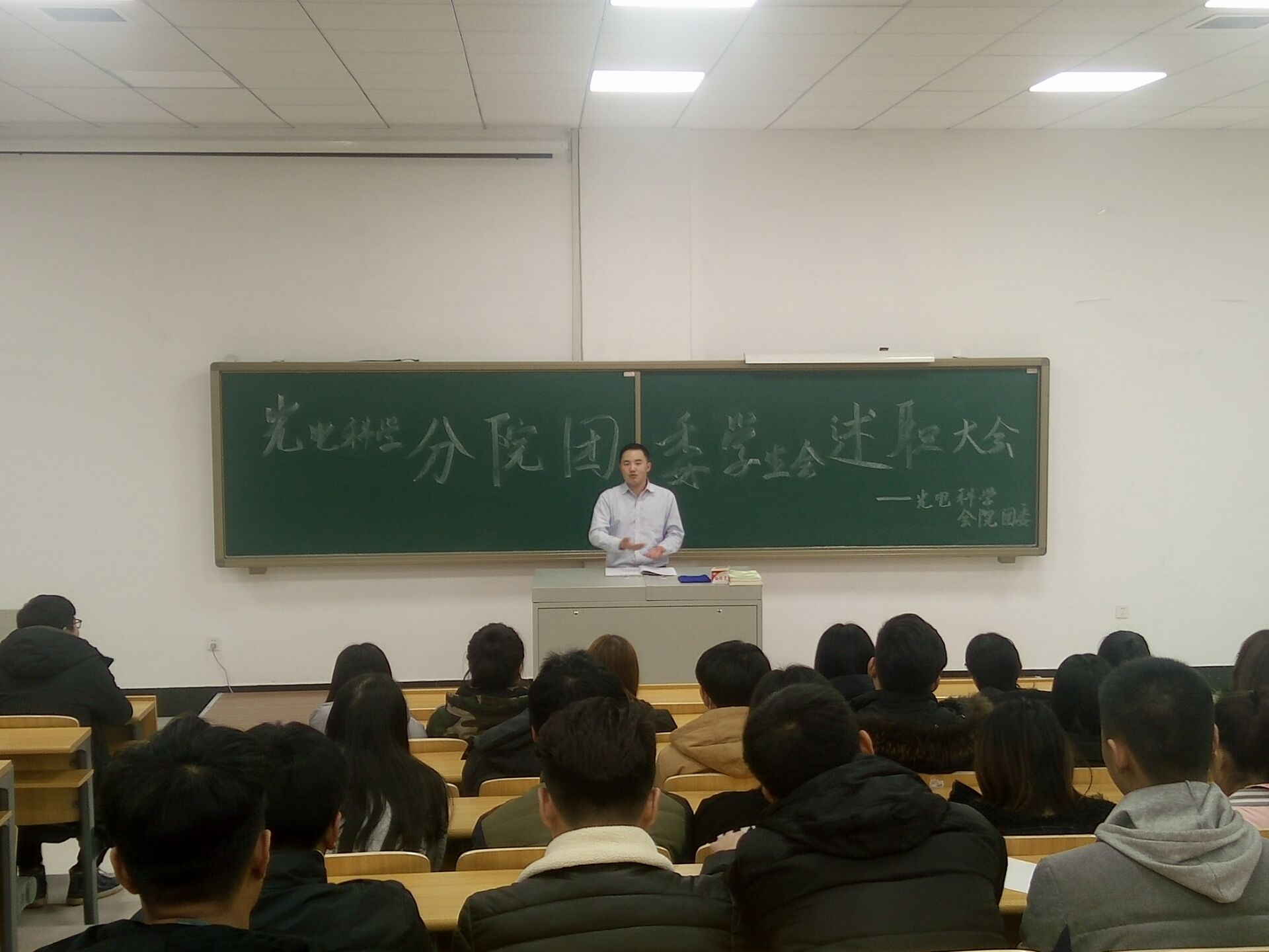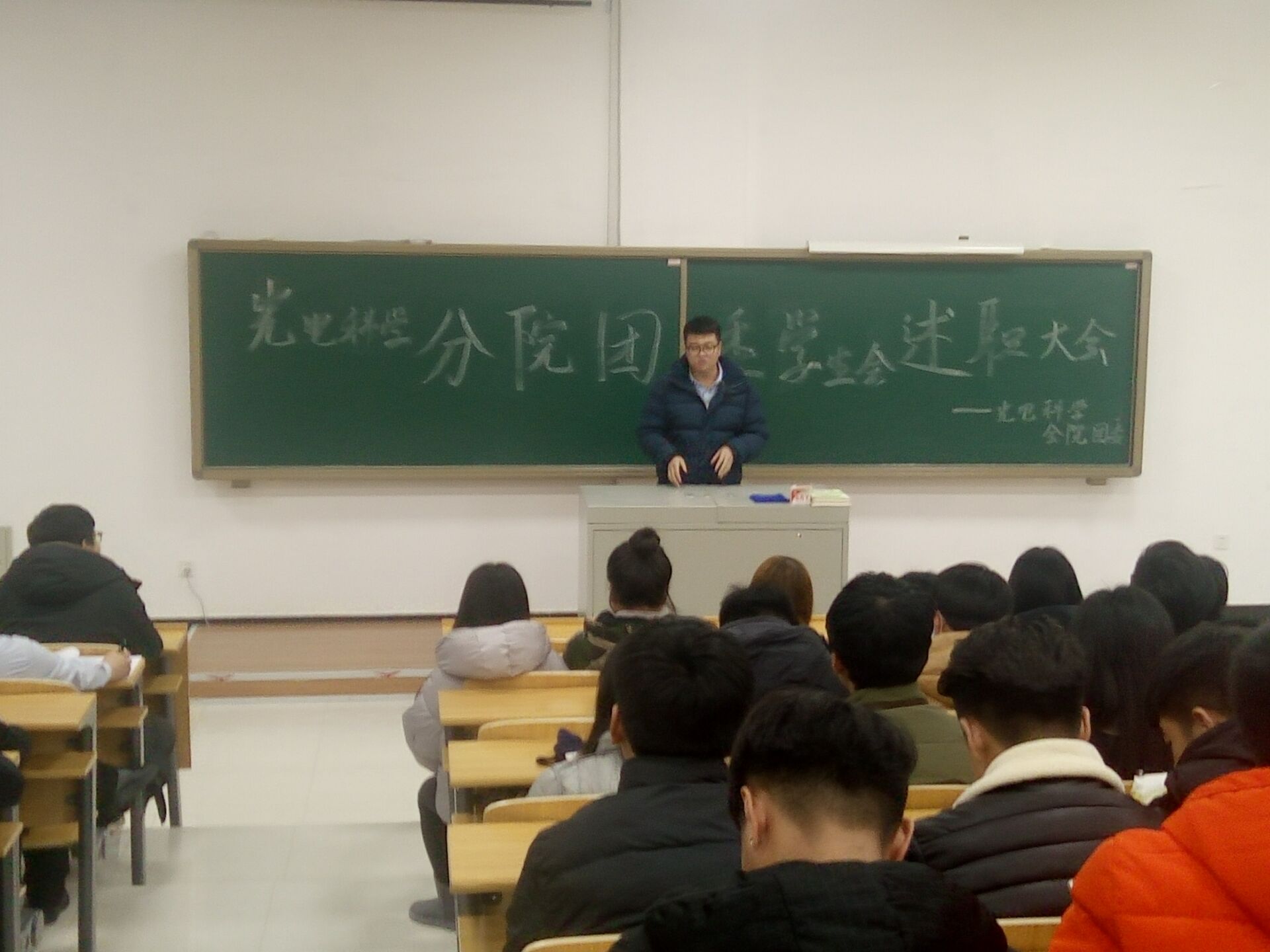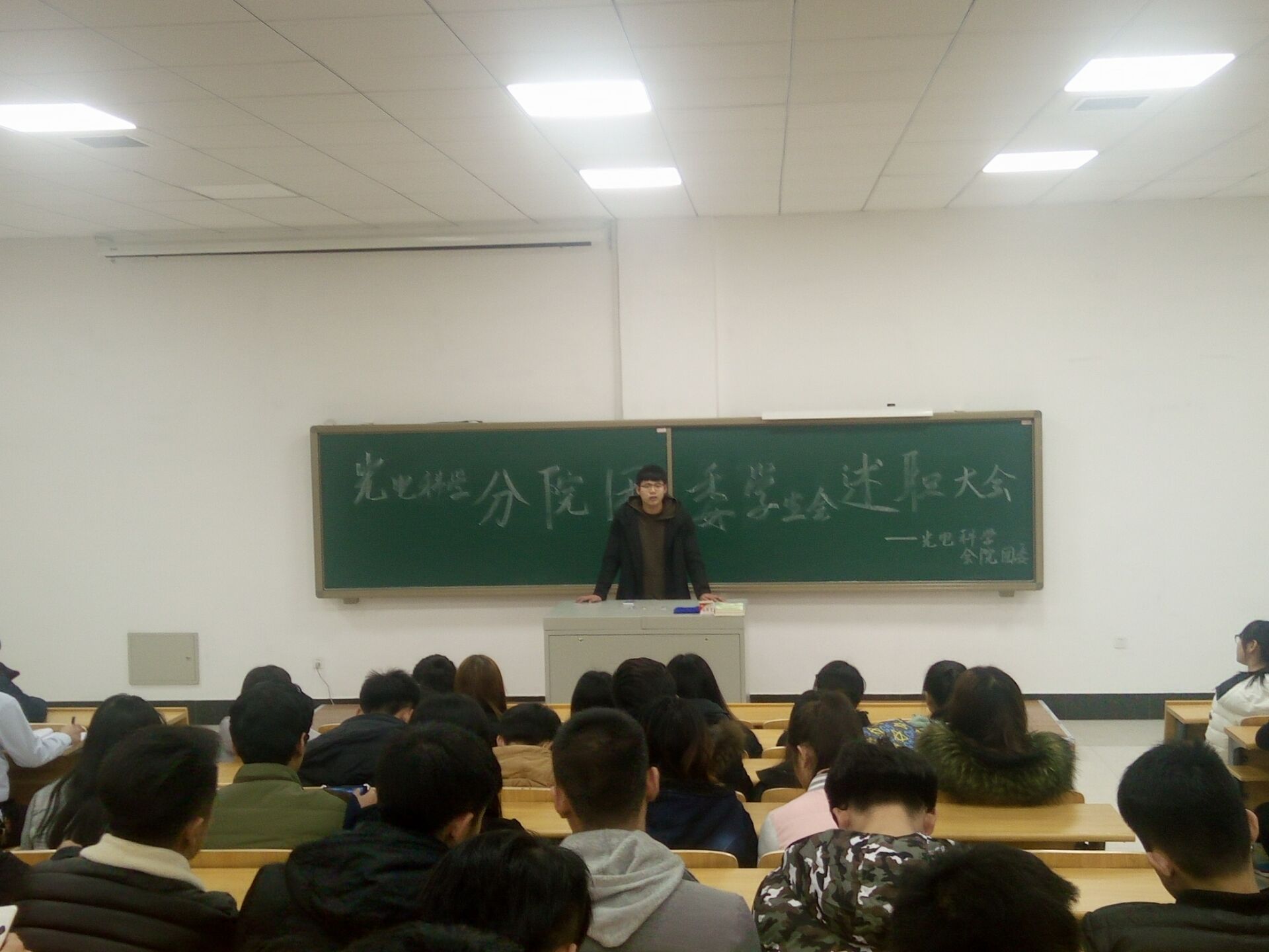 為積極響應我院“十三五”規(guī)劃的學生管理改革,我院學生會全體成員于12月8日下午6點在東階101教室召開光電科學分院部級以上述職大會。我們已經(jīng)在學期之初予以通知,根據(jù)李楊老師的要求,進行述職的同學應當圍繞活動與日常兩個方面實事求是地闡述自己一學期工作,分析各項任務的完成情況,未完成原因分析,分析工作中取得的經(jīng)驗,存在的不足,以及下學期的工作打算等等。