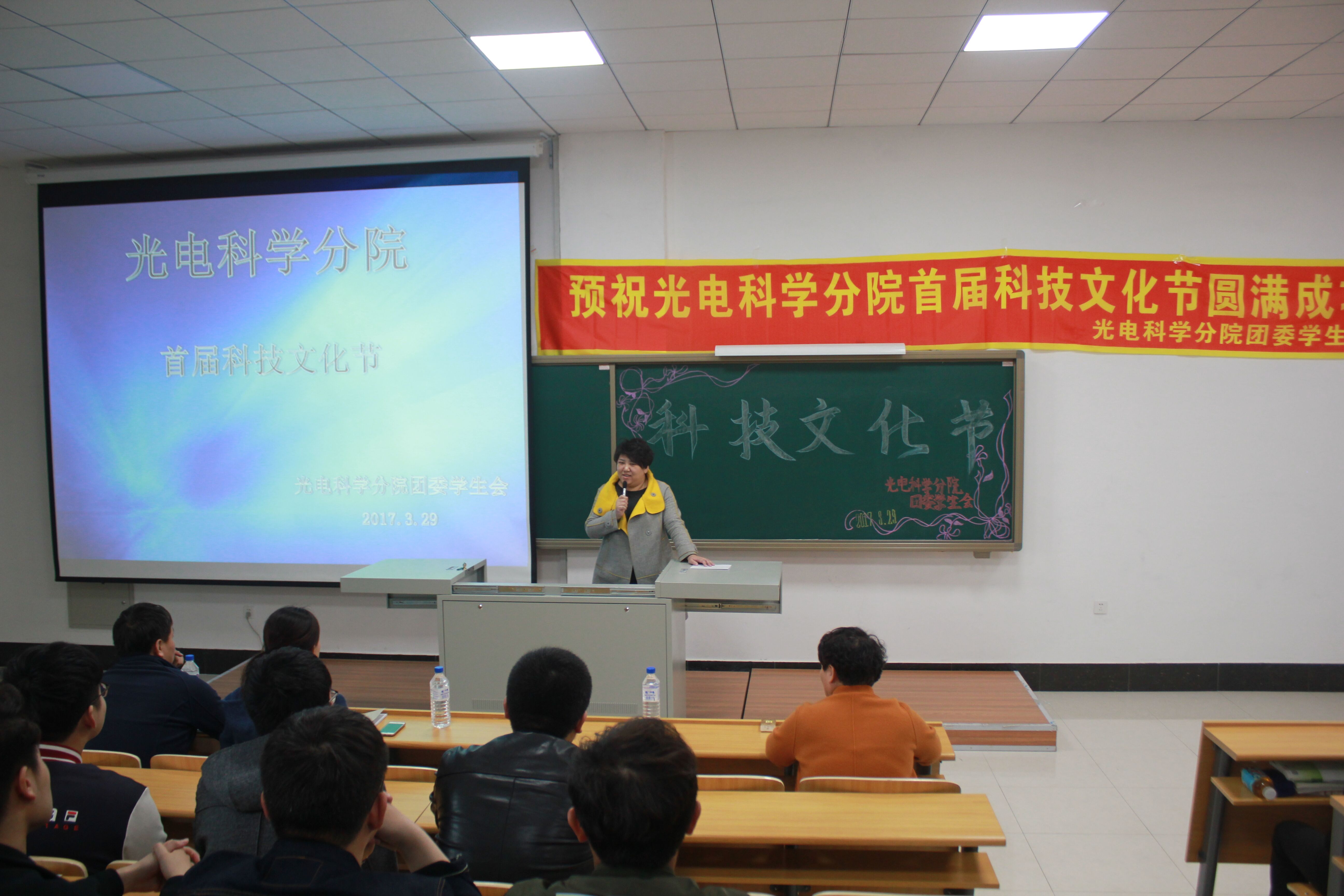 首先,谷開慧院長致詞,使我們充分了解了光電科學分院作為第一分院的榮譽以及龐大的教育資源。科技文化節(jié)是一次科技與文化的碰撞,也是我們光電科學分院從“無”到“有”的過程,是一次大學生創(chuàng)新型活動。