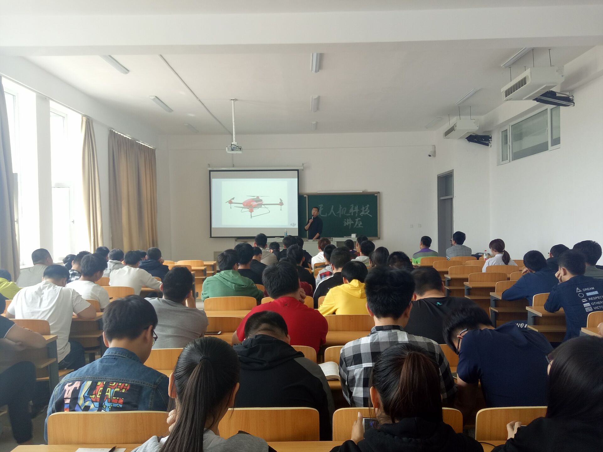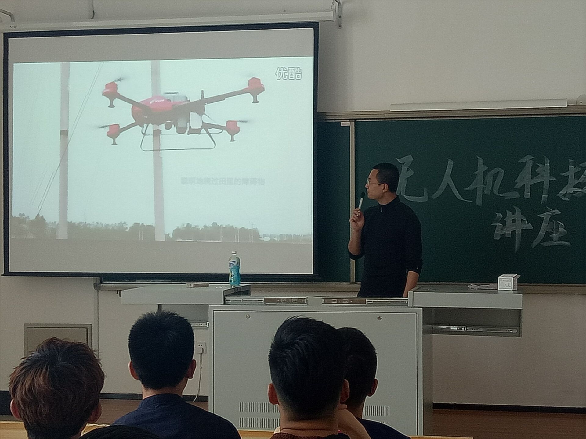 據(jù)介紹現(xiàn)在無(wú)人機(jī)技術(shù)發(fā)展極快,并且成本相對(duì)較低,已經(jīng)在民用領(lǐng)域取得了廣泛的應(yīng)用。我國(guó)的無(wú)人機(jī)主要應(yīng)用在影視航拍、電力巡檢、農(nóng)用保植、警用偵查、消防救援、航空測(cè)繪六大領(lǐng)域。無(wú)人機(jī)的使用極大地保障了航拍作業(yè)人員的安全,提高了電力巡線的效率,省藥、省時(shí)高效的同時(shí)減少農(nóng)藥對(duì)人和環(huán)境的危害,提高了工作效率。講座中引入了大量的圖片和視頻,生動(dòng)形象、深入淺出。同學(xué)們聽(tīng)得津津有味。