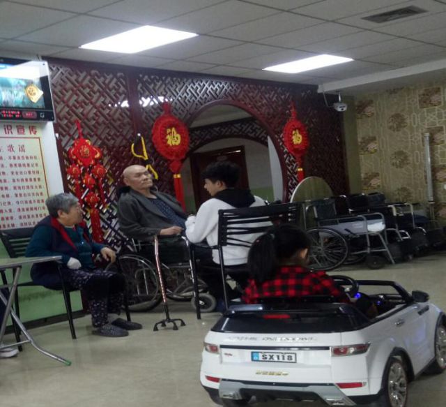 養(yǎng)老院的負(fù)責(zé)人帶我們參觀了娛樂室、康復(fù)室、醫(yī)務(wù)室、老年活動(dòng)室等,并表示這些老人缺的不是物質(zhì)上的資源,而是內(nèi)心精神上的陪伴。他們要求的并不多,只是希望親人能夠經(jīng)常去看看他們,和他們聊天讓他們感覺不再孤單。負(fù)責(zé)人還說(shuō)所以我們的到來(lái)讓老人非常開心,希望可以經(jīng)常來(lái)看望他們。
