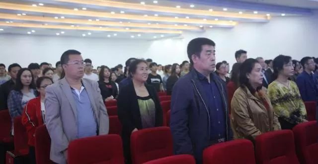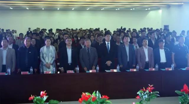 典禮正式開始,全體起立奏唱《中華人民共和國國歌》。